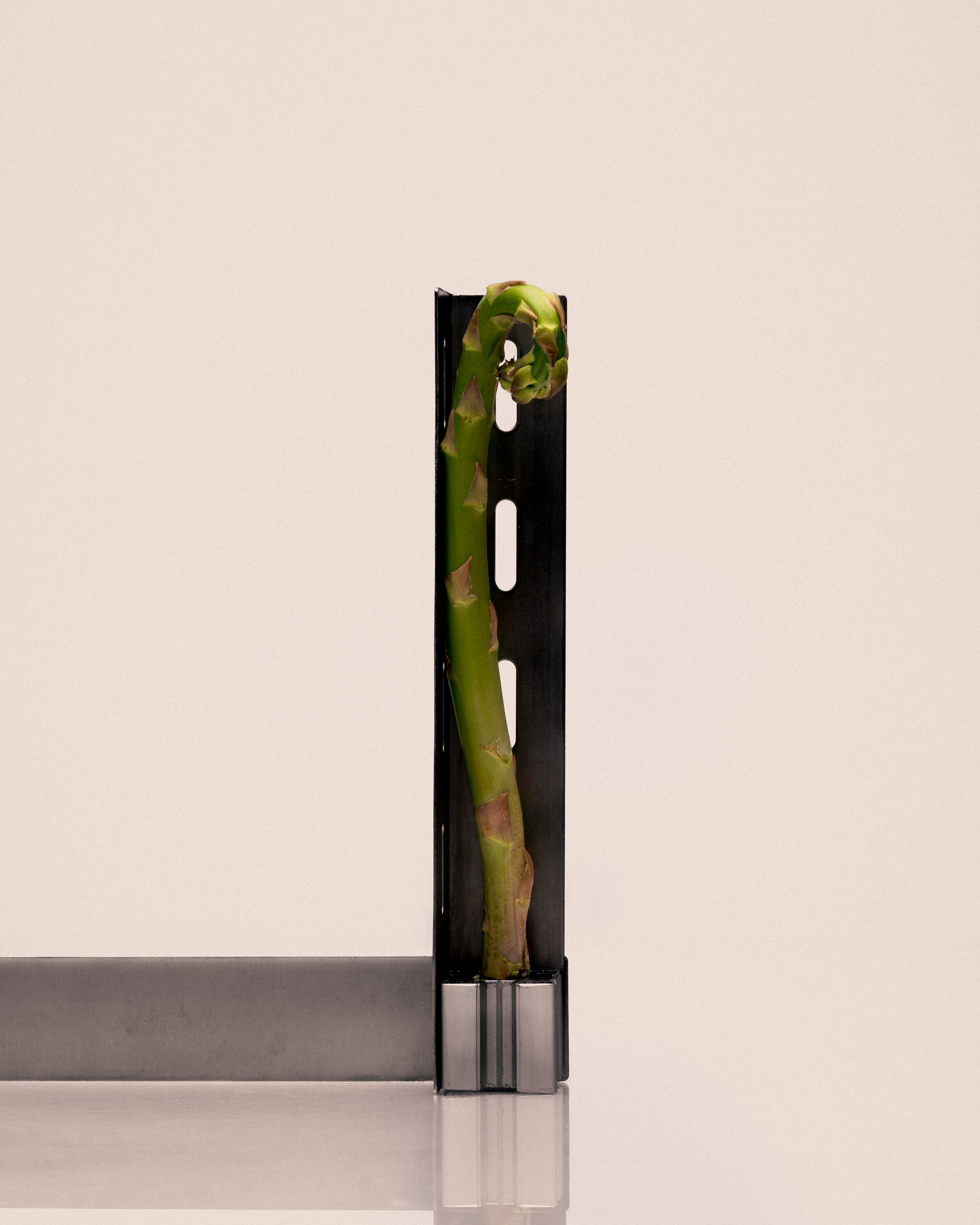 Through careful composition, the metallic reflections and cast shadows not only shape the space, but also invite introspection, offering a visual refuge in a world overloaded with stimuli.
